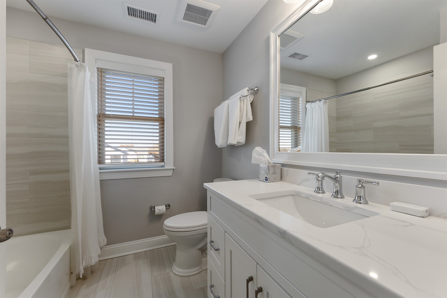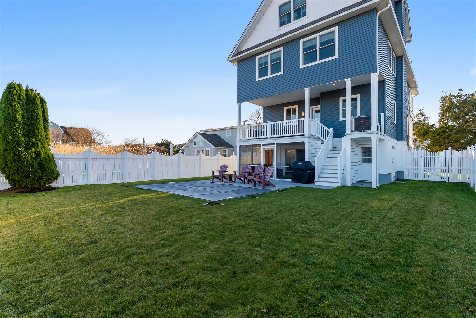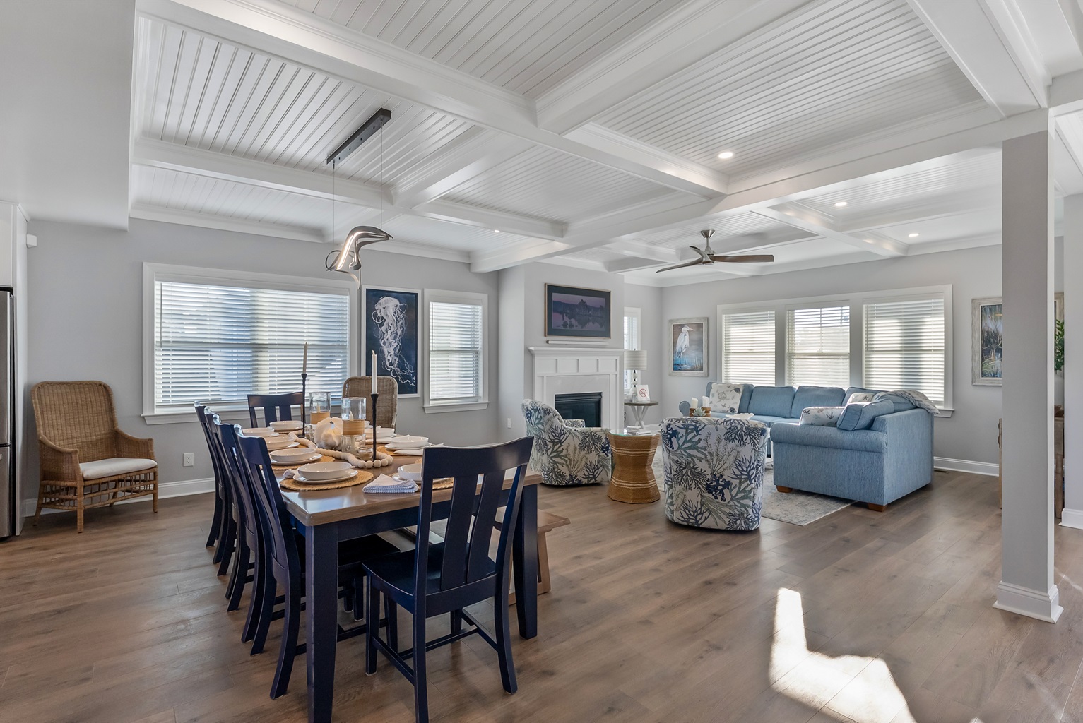 Modern amenities, including seven TVs,one a unique Frame TV that is a seascape painting when not in use, and a 75 inch in the third floor sitting room add a contemporary touch to the overall experience and allow for great movie nights!